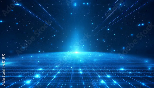 Abstract blue background with grid lines and stars, perfect for futuristic designs.