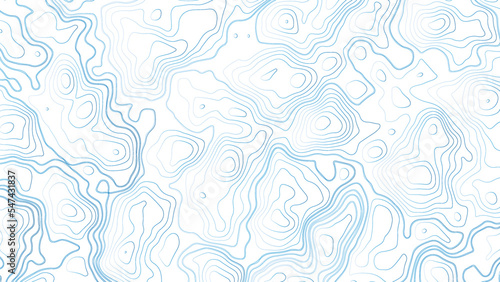 Abstract blue background with map contour. Moden blue lines of the relief map on a white background. Vector grid map.