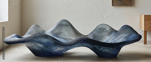 art, sculpture, glasses, blue, abstract, modern, contemporary, design, decor, home, interior, wave, ocean, water, ripple, form, shape, curve, smooth, texture, glossy, elegant, stylish, luxury, artistic, creative, unique, hand-made, craftsmanship, beautiful, aesthetic, object, piece, artwork, style, trend, minimal, serenity, calm, peaceful, tranquil