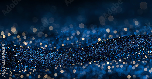 Abstract blue glitter background with shimmering bokeh lights creates dreamy atmosphere. Perfect for design projects, wallpapers, or festive themes