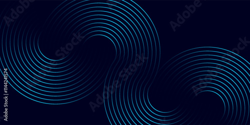 Abstract blue glowing geometric lines on dark blue background. Modern shiny blue circle lines pattern. Futuristic technology concept. Suit for cover, poster, banner, brochure, header, website