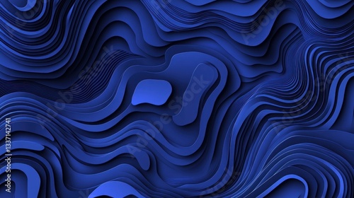 Abstract blue layered topographic map, modern 3D rendering effect wallpaper