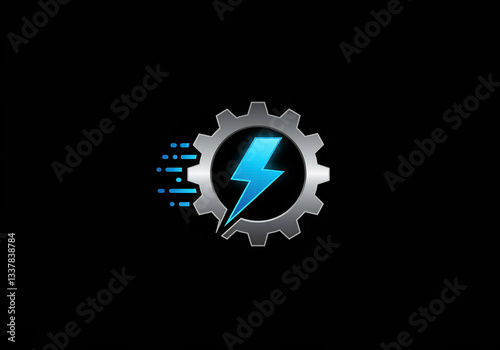 gear, lightning bolt, speed, power, energy, technology, electricity, innovation, efficiency, progress, motion, dynamic, metallic, silver, blue, dark background, abstract, icon, logotype, design, symbol, industrial, modern, digital, futuristic, fast, powerful, strength, force, mechanism, engine, machine, industry, graphic, illustration, vector, clip art, element, template, business, corporate, brand, marketing, communication, concept, creative