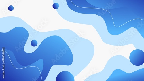 Abstract blue liquid background with organic wavy shapes and floating circles. Modern, cool design for web, print, or presentation.