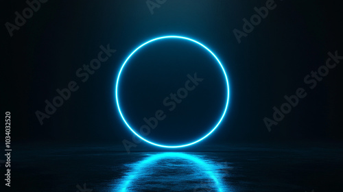 Abstract Blue Neon Circle Glow Light Reflection Background Design