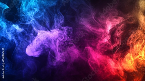 Abstract blue, pink, and orange smoke isolated on a black background.