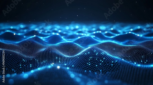 Abstract blue wave pattern with glowing dots, perfect for technology, digital art, or futuristic project backgrounds.