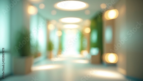 Abstract blur luxury hospital corridor. Blurred clinic interior background with defocused effect. Healthcare and medical concept.