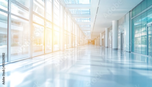 Abstract blur of a bright hospital corridor, evoking a sense of calm, tranquility, and hope.