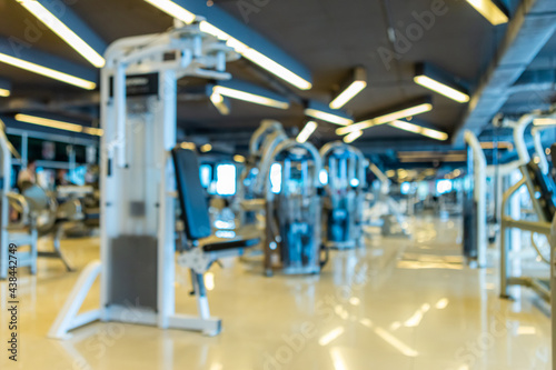 Abstract blur of defocused modern gym interior and fitness health club with sports exercise equipment,fitness center interior background.