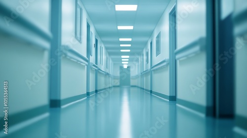 Abstract blurred background of empty hospital or clinic corridor in modern medical facility interior