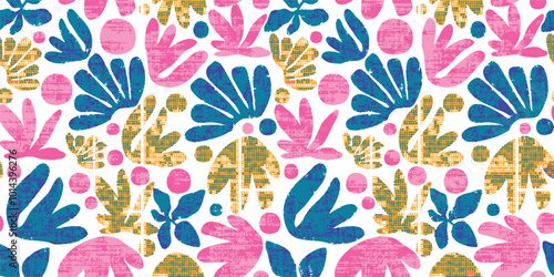Abstract botanical Floral brush strokes seamless pattern design for fashion textiles, graphics, backgrounds and crafts linen texture leaves silhouettes Chic rustic interior stylish pattern all over