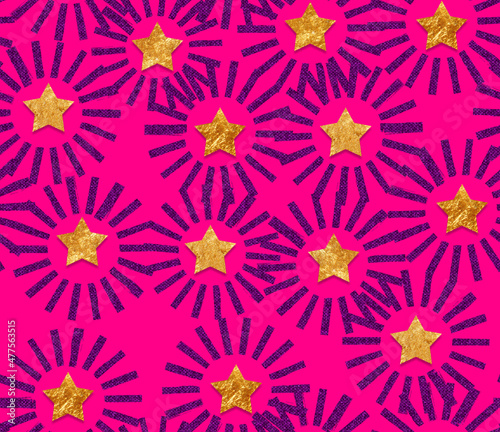 Abstract Brush Radial Circles Golden Textured Stars Seamless Pattern Trendy Fashion Color Design