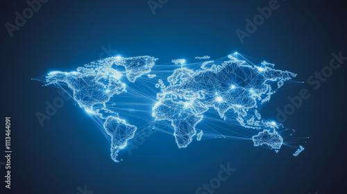 abstract business connection of line from nail node to node on world map background Innovation network points Earth's surface