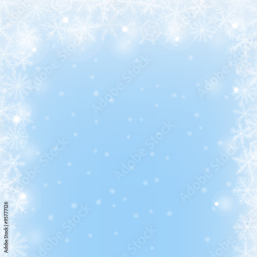 Abstract Christmas light blue border background with snowflakes.