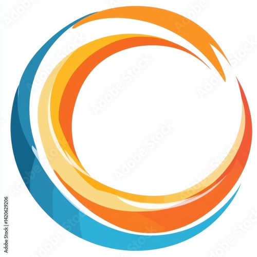 Abstract Circular Design with Swirling Blue, Yellow, and Orange Bands on White Background