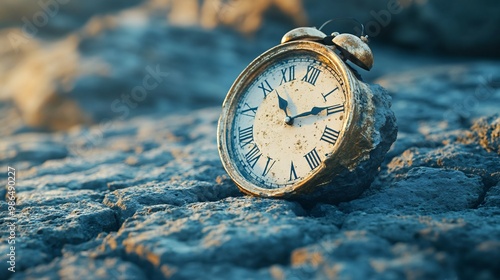 Abstract clock melting over a surface, symbolizing the fluidity of time, copy space
