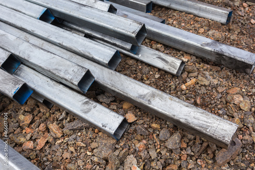 Abstract close up of steel square pipes