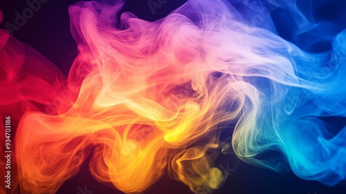 Abstract close-up of colorful smoke plumes in motion, creating a sense of fluidity and energy against a dark backdrop