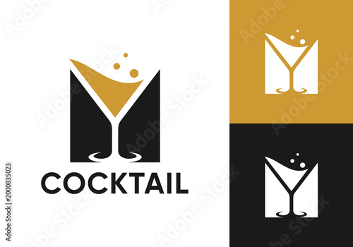 abstract cocktail logo. wine drink party vector design concept