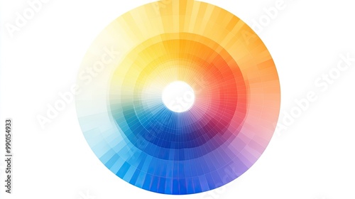 Abstract color wheel displaying warm and cool tones, arranged in a smooth gradient, isolated on white with vivid saturation and clean design