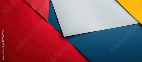Abstract colored paper texture background featuring minimal geometric shapes and lines in pastel blue red yellow navy and white colors. Copy space image. Place for adding text and design