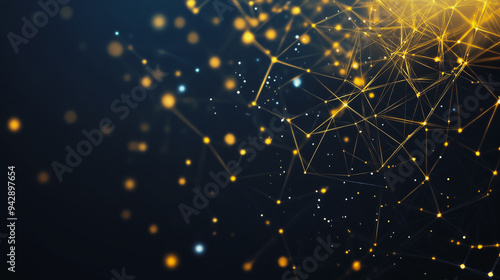 Abstract colorful business connection of lines from nodes It is connected to endless nodes and represents the innovation of communication in the network with black background