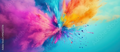colours, colourful, explosion, paint, splash, burst, vibrant, bright, high-coloured, dynamic, movement, abstract, design, texture, background, graphic, art, artistic, energy, power, creativity, happiness, celebration, festival, fun, joy, powder, dust, cloud, sky, blue, pink, yellow, orange, purple, magenta, cyan, teal, green, red, white, graphic design, abstract design, abstract background