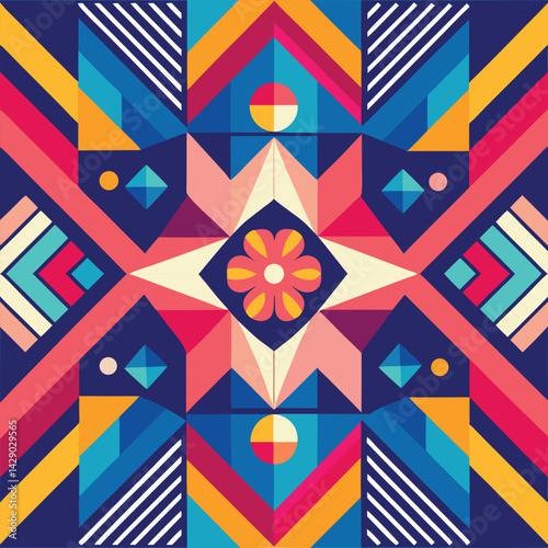 pattern, seamless, vector, geometric, wallpaper, texture, design, illustration, colours, art, decoration, tile, shape, triangle, fabric, ornament, colourful, vintage, textile, element, pink, flower, retro, print