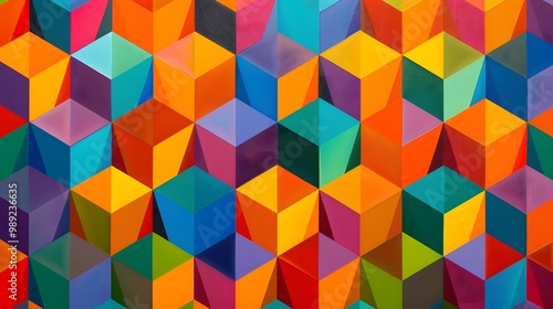 abstract, geometric, pattern, cube, colourful, shape, design, background, art, digital artwork, illustration, graphic design, texture, bright, vibrant, high-coloured, orange, blue, green, red, yellow, purple, many-coloured, repeating, seamless, modern, contemporary, style, minimal, creative, project, wallpaper, poster, print, fabric, textile, surface, patterned, geometric shape