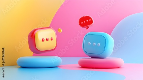 Abstract Colorful Geometric Shapes and Platforms in Studio Setup