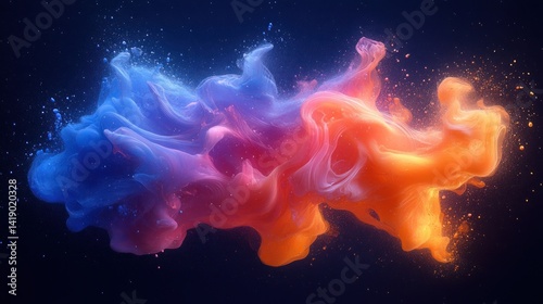 Abstract Colorful Ink Cloud Swirl: A mesmerizing dance of blue, orange, and pink hues in a dark background, creating a vibrant and dynamic visual experience.