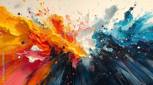 abstract, art, canvas, colourful, explosion, paint, colours, texture, vibrant, dynamic, energy, movement, stroke, splash, drip, orange, yellow, red, pink, white, blue, teal, turquoise, dark, black, light, shades, hue, tone, palette, mixture, blend, mixing, acrylic, oil, thick, background, design, artwork, visual