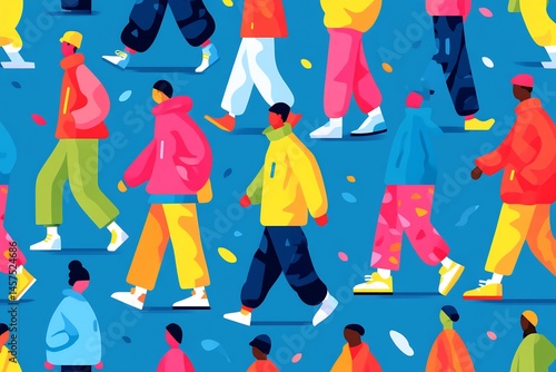 Abstract colorful pattern of multicultural people in various poses, representing social diversity