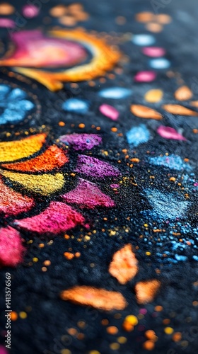 Abstract Colorful Powder Pattern on Black Background Artistic Texture Macro Photography
