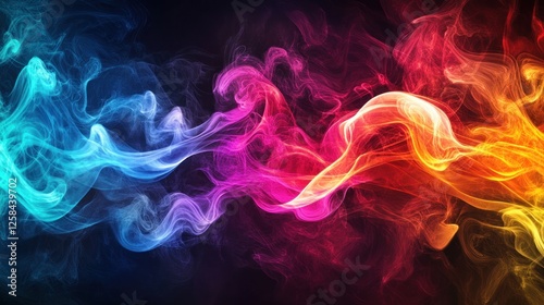 Abstract colorful smoke swirls on black background. (1)