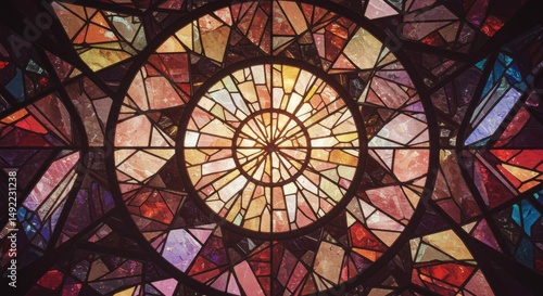Abstract Colorful Stained Glass Window Geometric Pattern Circular Design Architectural Detail