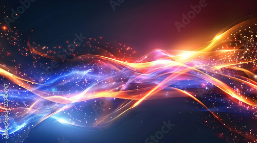 Abstract colorful waves of light with sparkling effects on a dark background.