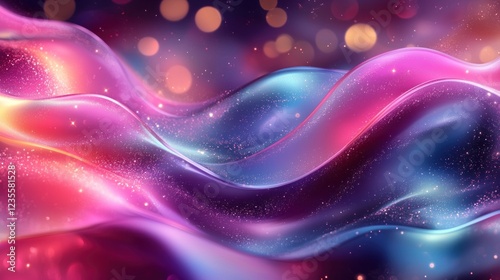 Abstract colorful waves with sparkling bokeh background, ideal for digital art or backdrop