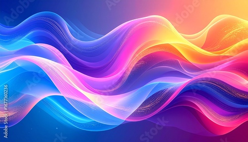 Abstract colorful wavy lines flowing across a vibrant background, creating a mesmerizing visual effect