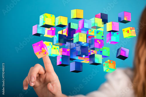 Abstract composition of colorful cubes floating in air, symbolizing connection, data, and future technologies.