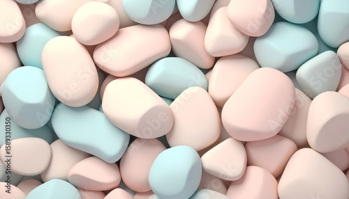 Abstract Composition of Pastel Pink and Blue 3D Clay Forms Creating a Textured Background