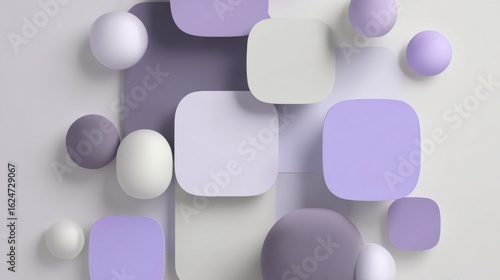 Abstract Composition of Shapes in Soft Lavender and White Tones