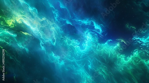 space, nebula, cosmic, galaxy, star, astronomy, universe, interstellar, celestial, night sky, science, nature, abstract, background, design, digital artwork, illustration, pattern, texture, bright, colourful, vibrant, green, blue, dark, light, aethereal, mysterious, magical, fantasy, futuristic, modern, astrophotography, deep space, nebulous, galactic, cosmos, outer space, milky way, aurora borealis, cloud, cloud, ai
