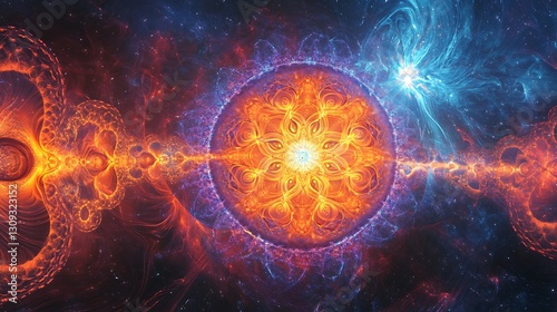 nebula, cosmos, galaxy, energy, mandala, swirling, abstract, space, futuristic, cosmic, celestial, universe, pattern, light, colours, design, art, digital, illustration, background, texture, vibrant, colours, symmetry, exploration, imagination, fantasy, hypnotic, science, technology, fractal, beautiful, spiritual, mystical, power, glow, radiance, orange, blue, red, purple, black, gold