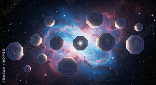 space, galaxy, universe, star, cosmic, nebula, astronomy, night, sky, cosmos, outer space, exploration, abstract, technology, digital, geometric, shape, structure, design, pattern, background, blue, purple, pink, orange, colourful, illumination, light, bright, energy, flocked, formation, object, futuristic, modern, science, fiction, render, artwork, illustration, texture, depth, fantastic, creative, surreal