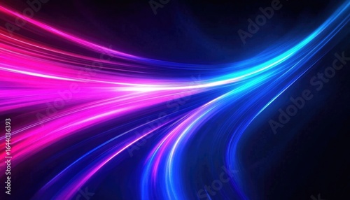 Abstract Curved Neon Light Streaks Vibrant Pink, Blue and White on Dark Backdrop