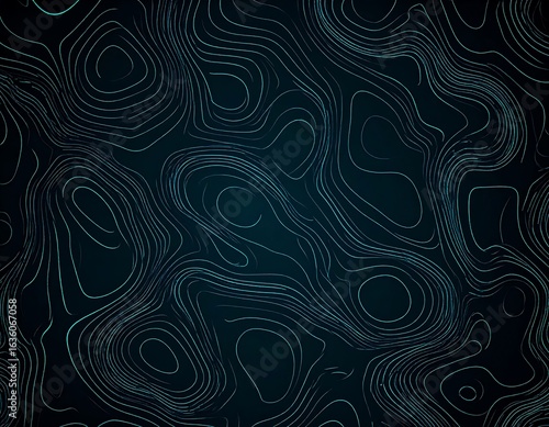 abstract, dark, teal, topographic, line, curve, pattern, design, geometric, seamless, modern, digital, art, texture, background, illustration, graphic, fluid, organic, complex, intricate, flowing, dynamic, gradient, dark blue, structured, minimalist, patterned, visual