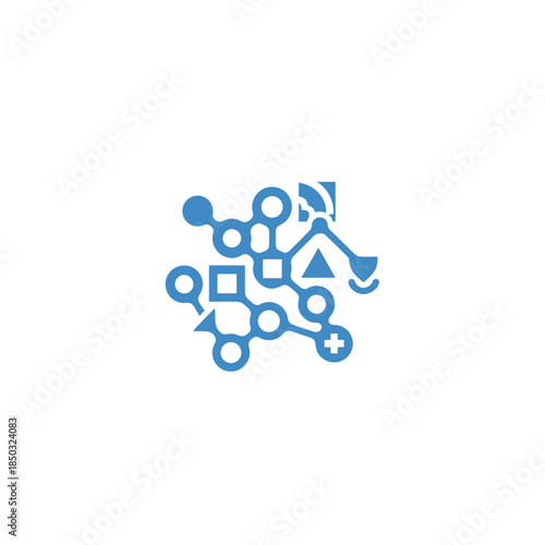 Abstract data network concept with connected geometric shapes and lines