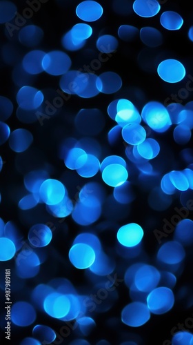Abstract defocused blue light bokeh on a dark background, creating a serene and magical atmosphere.